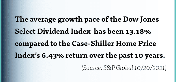But, as in real estate, we want to see a portfolio that appreciates as well as produces income. The good news is that this is also a benefit of high-quality dividend-paying stocks. And, to make things even better, the growth of each stock’s value in your portfolio is based, in large -part, on the present value of real cash flow and not solely on speculation about its future sale price. When you buy a company that pays a dividend, you are buying an income stream. As the company continues to raise their dividend over time, the value of the income stream rises which drives the value of the underlying security.