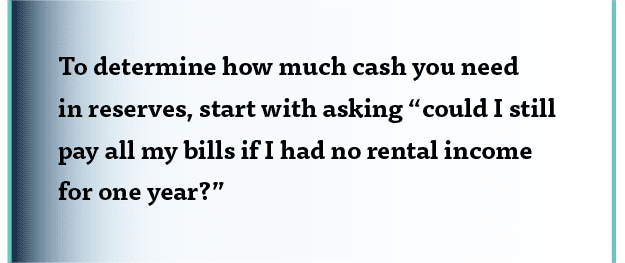 While some owners of residential real estate are large apartment complex companies, many are individuals that own a handful of properties, or maybe even only one or two. For the companies that have many units, the risk, while still elevated, can be dispersed among their many holdings. This is more difficult for the investor with only a few properties. In this case, a tenant who stops paying may have a significant impact on your ability to pay your own bills and it is difficult to raise the rent to a level that would mitigate or appropriately compensate you for this risk. While often effective, real estate rentals are frequently not diversified—a concentrated risk for a property owner. It can be highly effective when things are going well, but unmitigated catastrophe when things turn sour. I want to pause here for a bit of a sidebar. This elevated risk of residential real estate rentals highlights the significance of having appropriate cash reserves. If you determine the best choice is for you to maintain some or all of your rental properties, it is critical that you maintain appropriate cash reserves. The determination of the right amount of cash reserves is specific to your situation and your various income sources, but I would at least start with asking “could I still pay all my bills if I had no rental income for a year?”